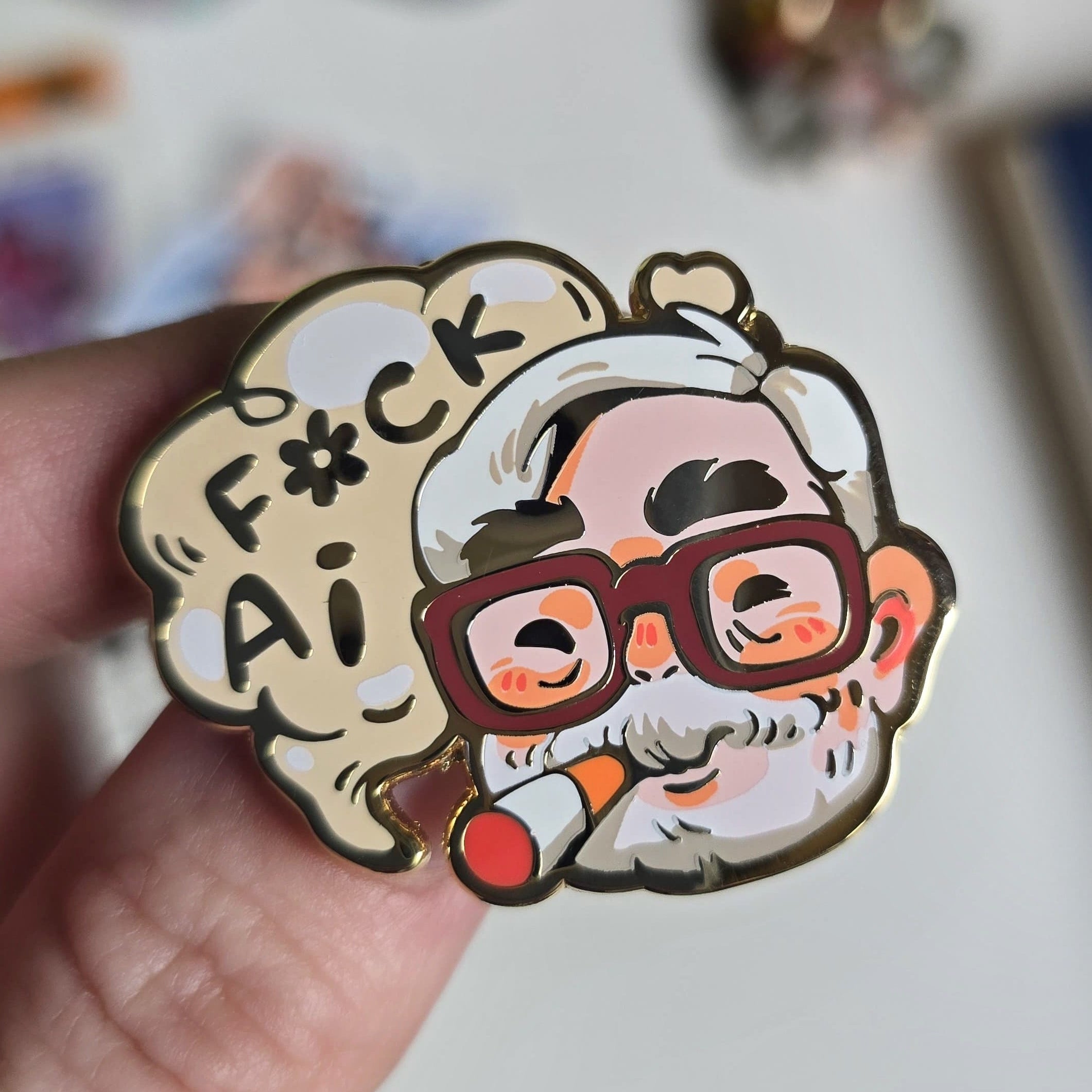 Size: 1.5 inch (=4 cm)Gold Plated, Hard Enamel with Screenprint details