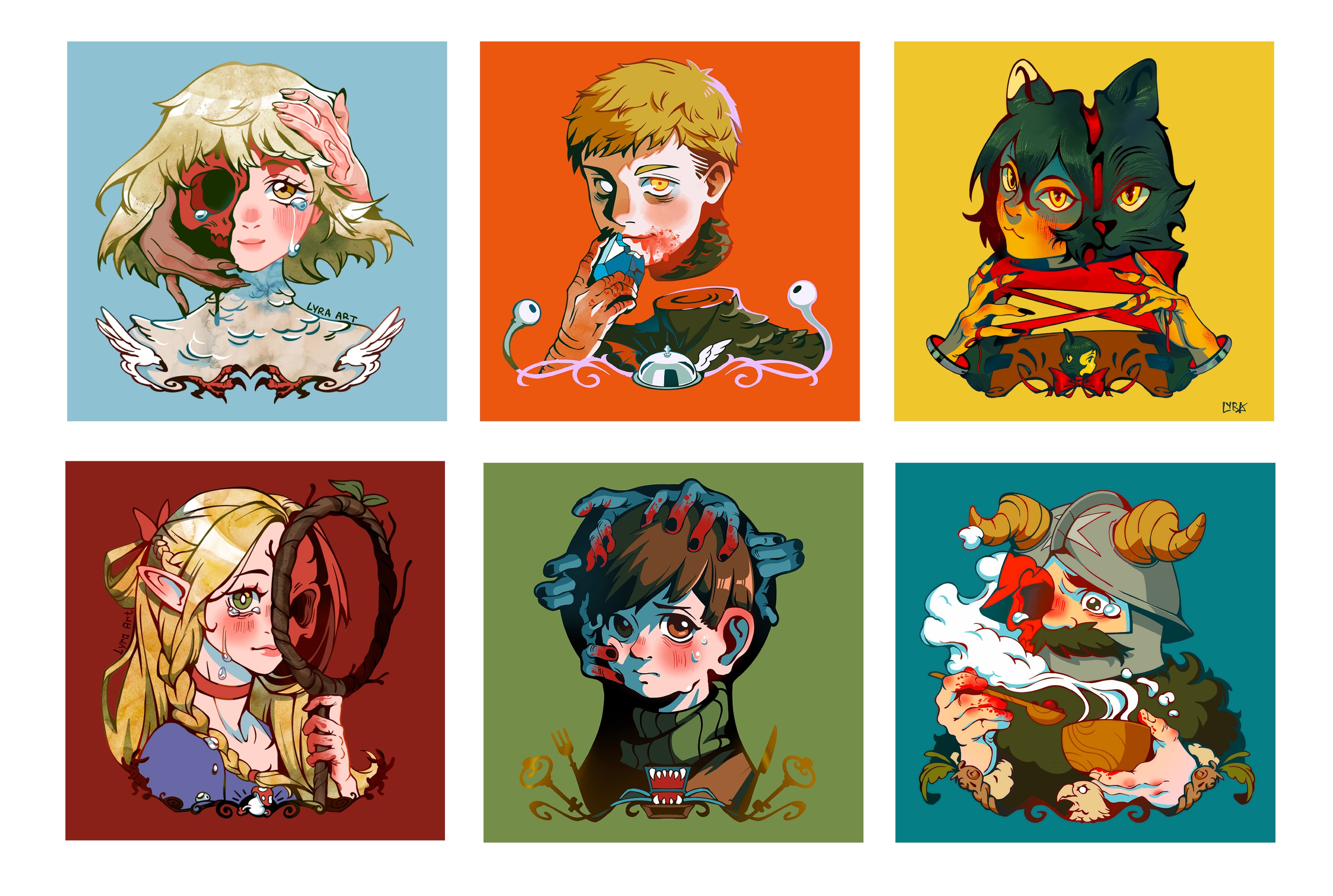 Dungeon Meshi Print Set includes 6 illustrations.